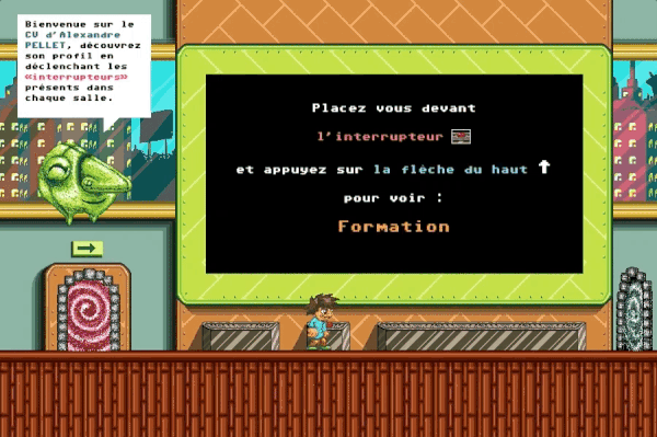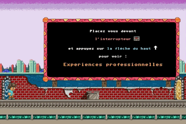 This interactive CV was designed to provide a unique experience for recruiters, immersing them in a world inspired by Super Nintendo video games. I also made sure to incorporate music directly from these games to add an authentic and nostalgic touch.